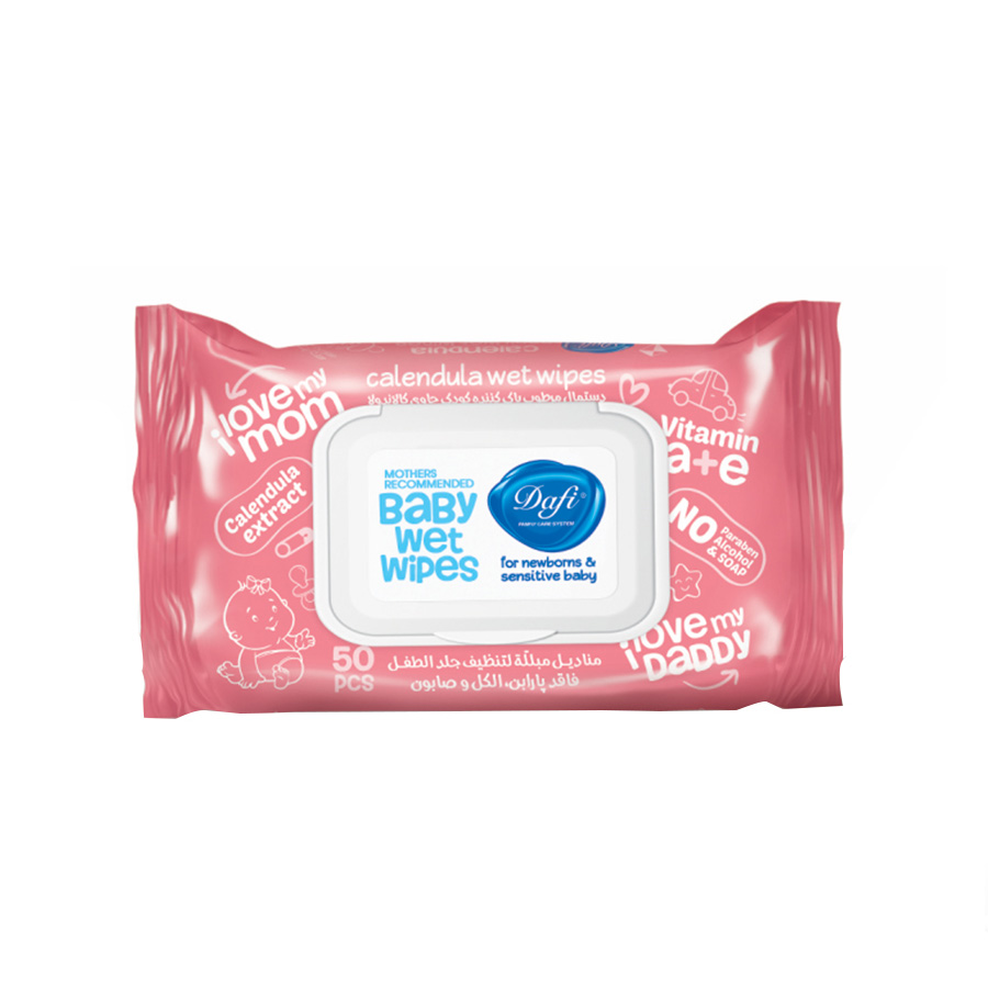 ترکیبات دستمال مرطوب پاک کننده کودک دافی حاوی عصاره کالاندولا ۵۰ برگی